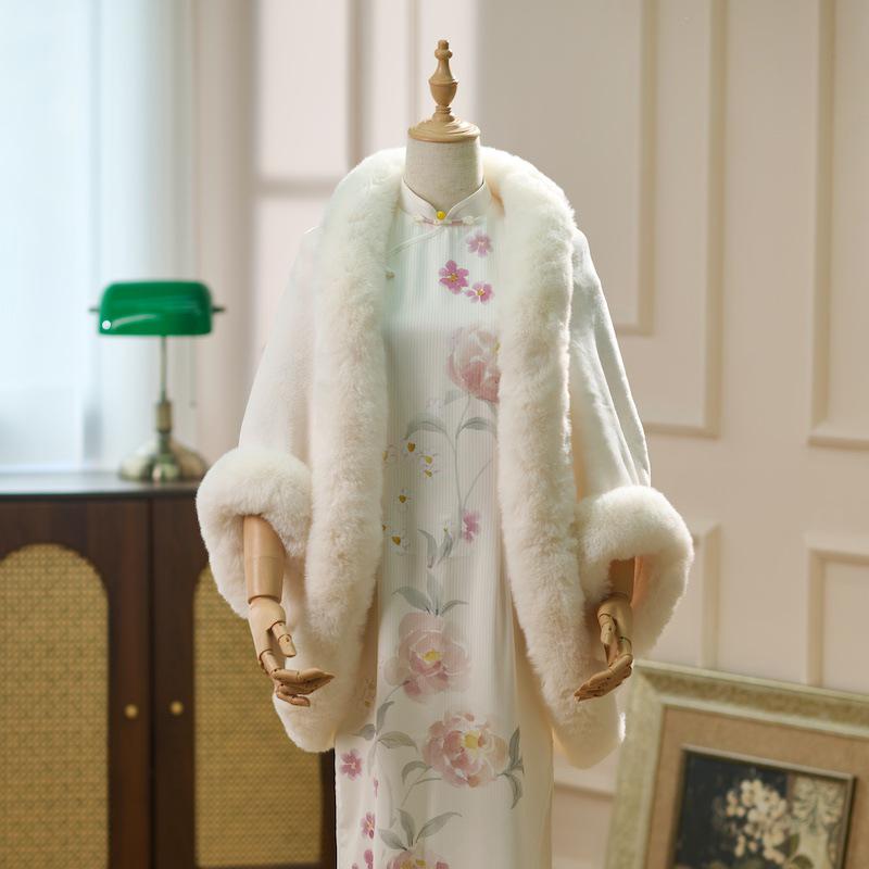 Qipao Hochzeitskleid mit Schal - 2025 Herbst/Winter Kollektion: Warmer dicker Ärmelstil