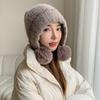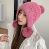 Warm Hairball Ear Protection Face Knitted Hat Women's Winter Rabbit Hair Cold-proof Wool Hat Plush Pullover Hat Women
