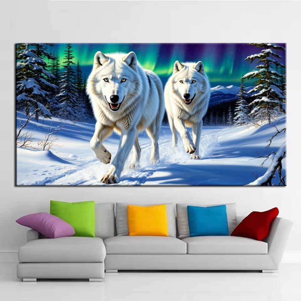 Große Größe Mosaik DIY Voll Diamant Malerei Kits Kunst Wolf Tiger Leopard im Schnee Stickerei Kreuzstich Strasssteine