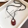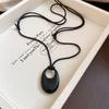 Halskette mit ovalem Anhänger, hohl, PU-Leder, Damenhalskette, elegante Pulloverketten
