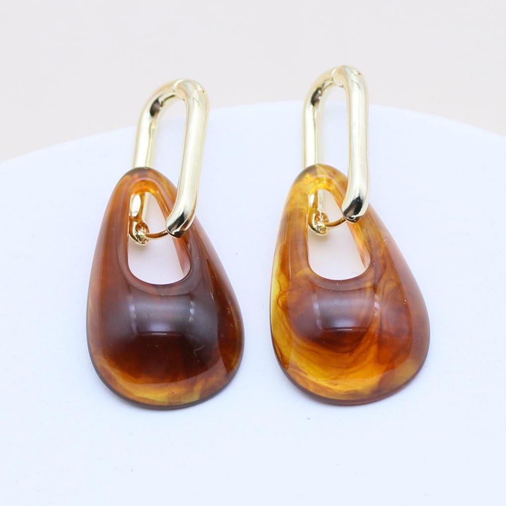 Retro Europäische & Amerikanische Acryl-Ohrringe: Vintage goldfarbene, kaffeefarbene, transparente Wassertropfen-Manschetten.