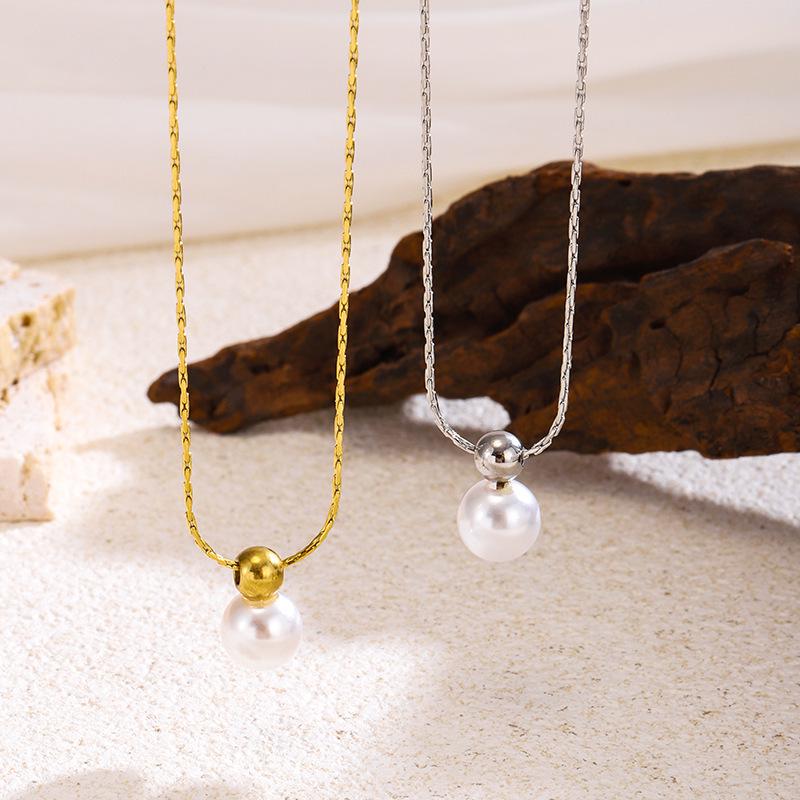 Europäische und Amerikanische Französische Elegante Perlenkette - Vielseitige 18K Gold Titanstahl Schlüsselbein Kette für Damen