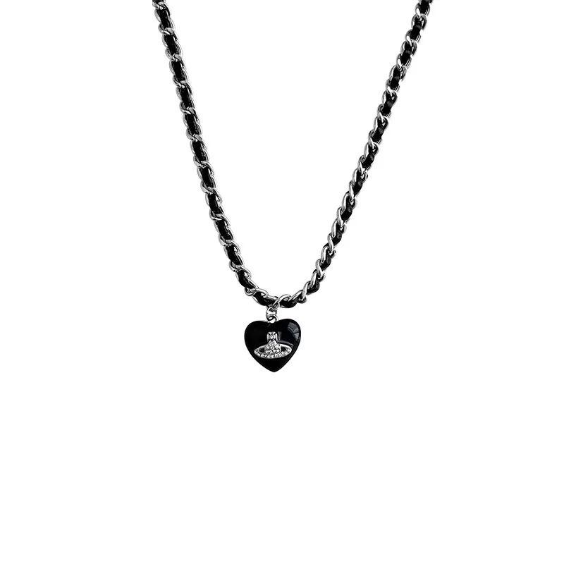 Vivienne Westwood Herz- und Saturn-Lederhalskette – Kaiserinwitwe Cixi Damen-Schlüsselbein-Choker