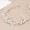 Handgefertigtes weißes Perlen-Brautstirnband mit Blumen