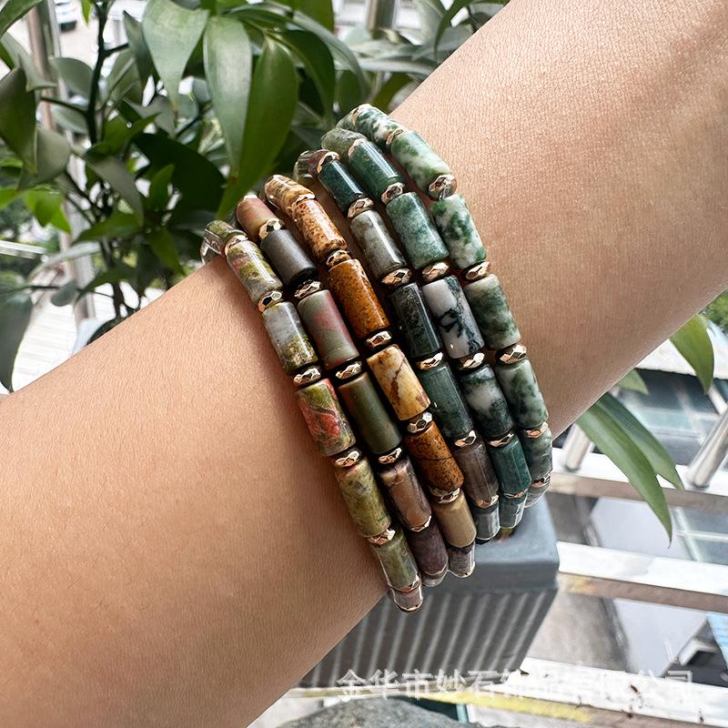 Bohemian Retro Green Agate Bamboo Bracelet - Adjustable and Woven Design