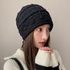 New Autumn and Winter Adjustable Lanyard Hollow Pile Knitted Hat Ear Protection Warm Fashion Fashion Headband Small Woolen Hat Showing Face