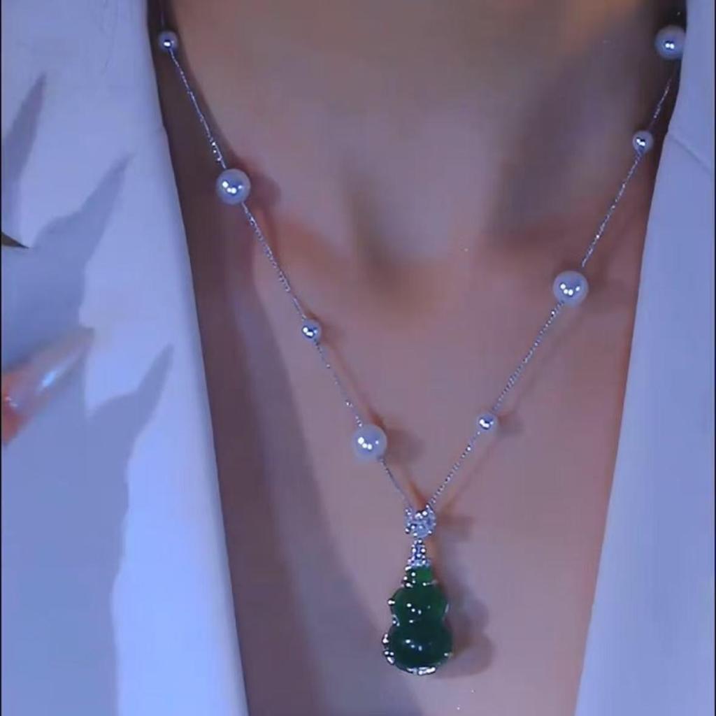Women's Green Gourd Pendant Titanium Steel Necklace - Elegant Light Luxury Clavicle Chain