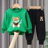 Jungen und Mädchen Bär Bedruckt Cartoon Niedlich Rundhals Langarm Lockerer Hoodie Lange Hose Zweiteiler