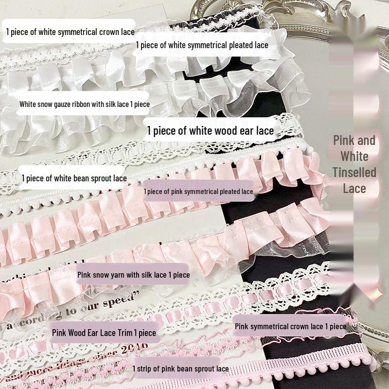 Handgefertigte rosa-weiße Spitzenborte mit Rüschen zur DIY-Dekoration von Rocksaum