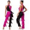 Damen Latein 70er Disco Jumpsuit Brust Glänzende Pailletten Quasten Fransen Lange Hose Kontrastfarbe Einteiler Body