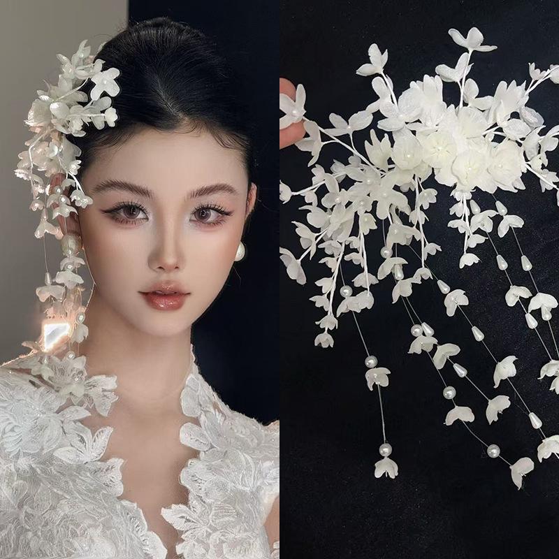 Brautschmuck im koreanischen Stil: Fee Mori Mädchen Quaste Blume Haarspange für Fotografie und Make-up Styling.