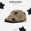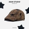 Korean Style Women's Versatile Distressed Star Newsboy Cap, Reversible Trendy Beret for Large Head Circumference