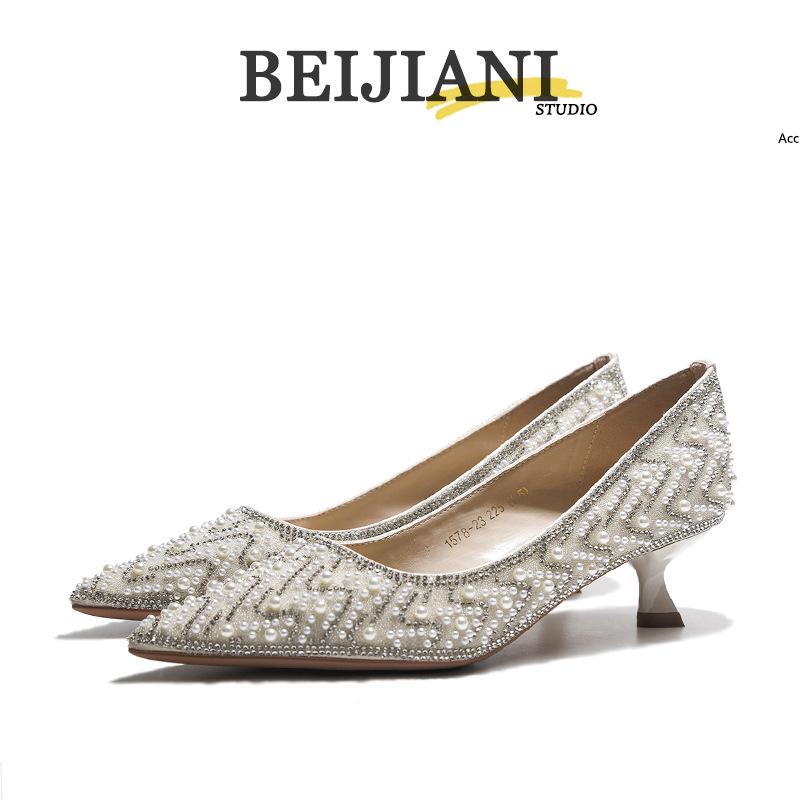 BEIJIANI 1578-23 Strass Perle High Heel Brautjungfern- und Braut Hochzeitsschuhe