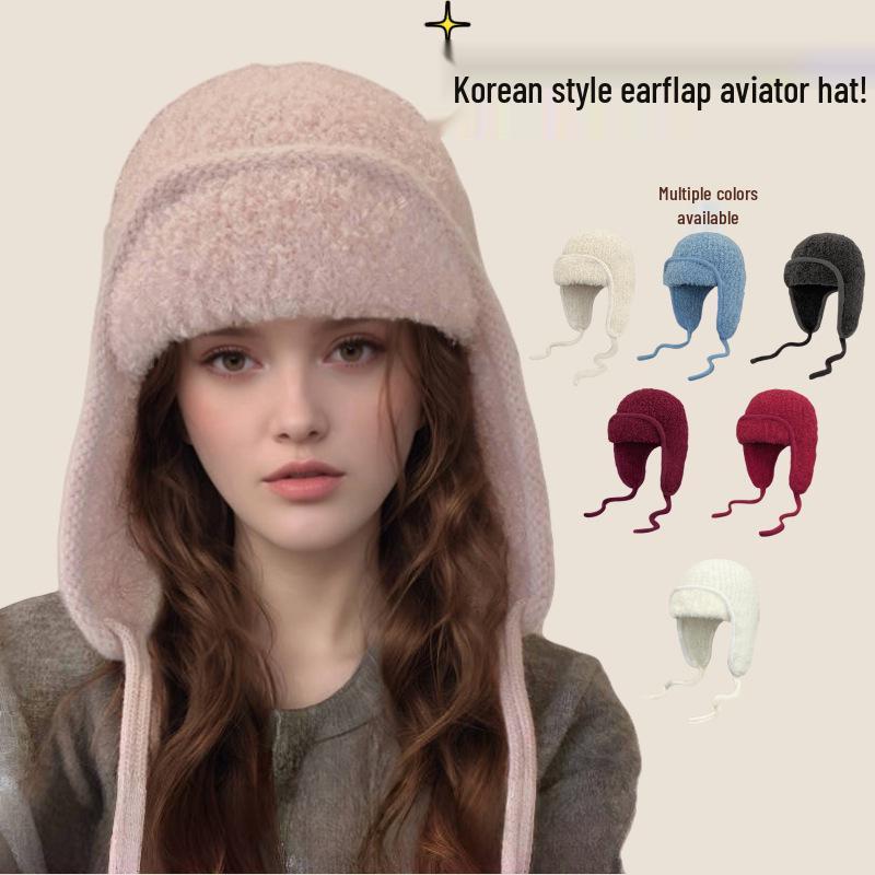 Warme Damen-Strickmütze im koreanischen Stil - Vielseitiges Lei Feng-Design für Herbst/Winter