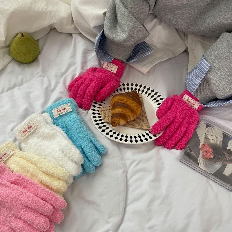 Damen Strickhandschuhe im koreanischen Stil, einfarbig - Neue Herbst/Winter Mode für Radfahren & Kälteschutz, Outdoor-Wärme
