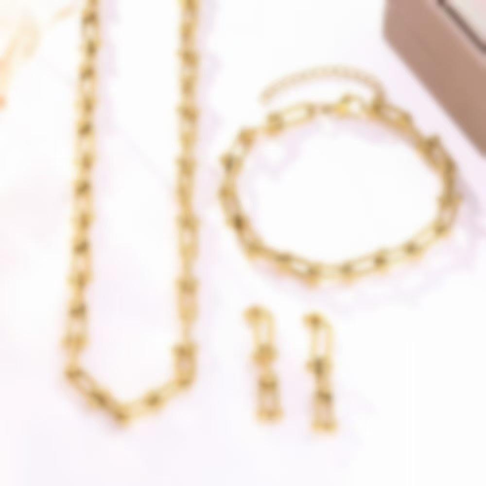 Europäischer und Amerikanischer Stil U-förmiges Hufeisen Halsketten-, Armband- und Ohrstecker-Set - 18 Karat Gold Titanstahl Bambusgelenk Design