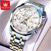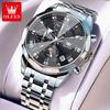Oulishi Herren Multifunktions-Chronograph mit massivem Stahlarmband und Faltschließe