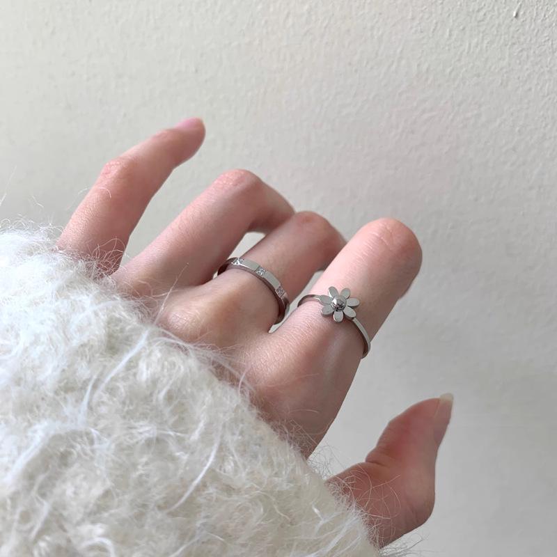 Damen Japanische & Koreanische Mode Drei-Diamanten Titanstahlring - Schlicht, Dünn Pinky-/Zeigefingerschmuck