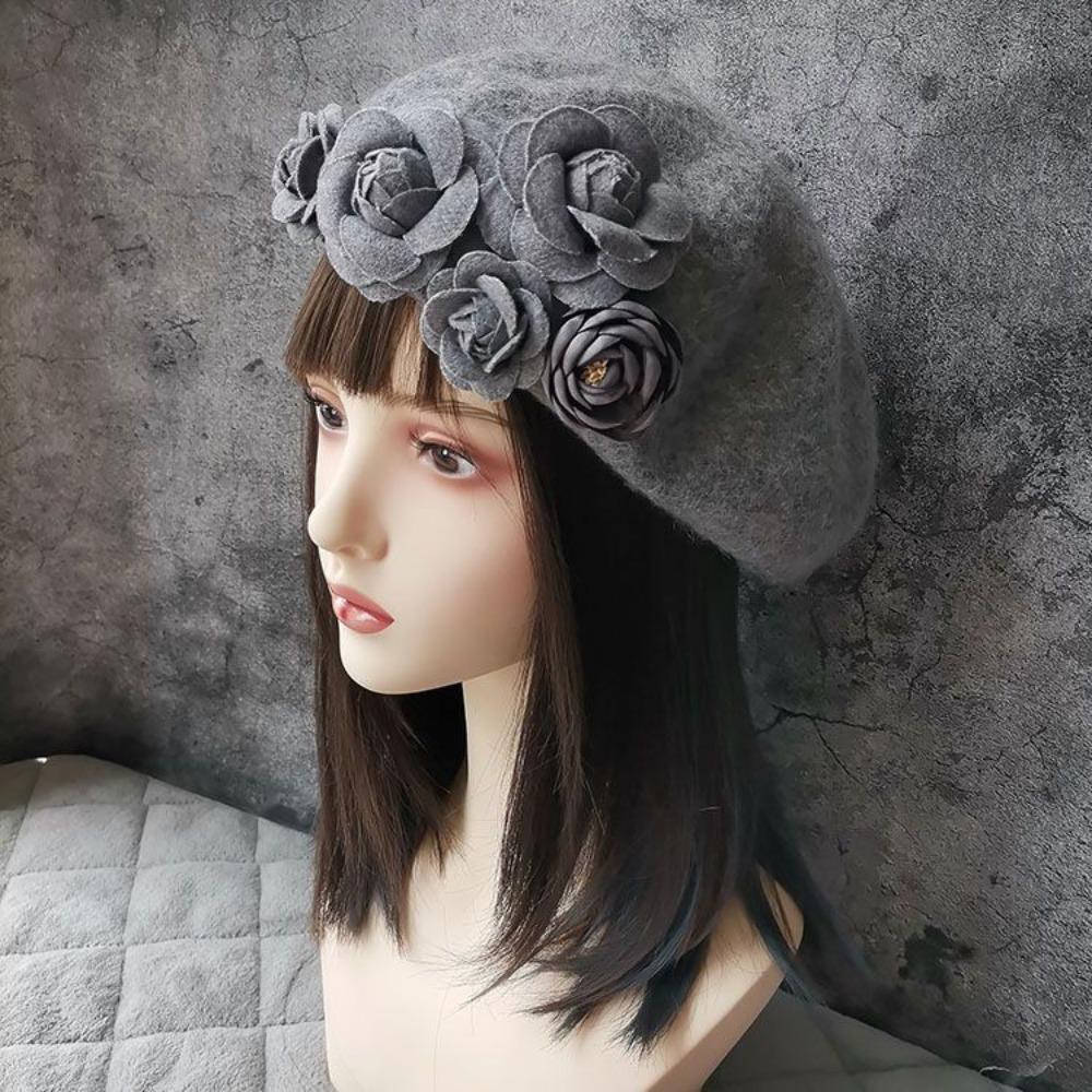 Herbst und Winter Dreidimensionale Kamelienblüten Wollbarett Ausländischer Stil Vielseitig Warm Knospenmalermütze Frau
