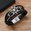 Retro Stil Zinklegierung Schiffsrad Mehrschichtiges Herren Lederarmband