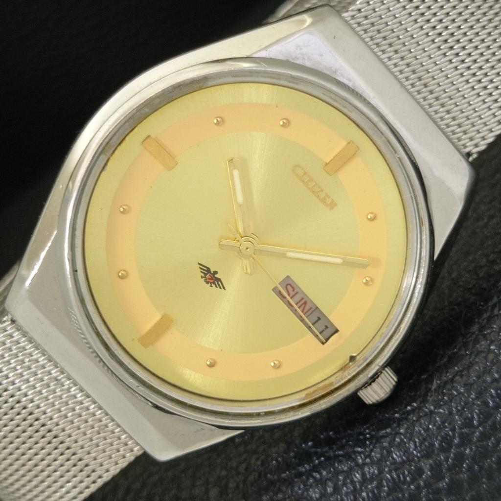CITIZEN AUTOMATIC 8200 JAPAN MENS VINTAGE GOLDEN COLOR DIAL WATCH a702745-1 R210-a702745