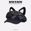 Y2K Millennium Katzenohren Schiebermütze - Coole Metallketten Baskenmütze für Damen