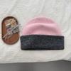 Autumn-Winter Color Block Knit Hat: Korean-Style, Double Layer, Ear Protection, Windproof, Coldproof, Slimming Design for Cycling