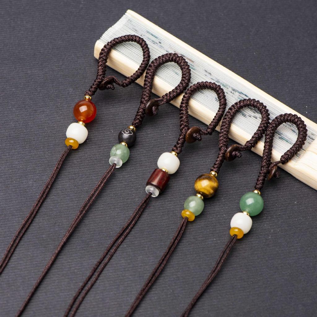 Handgeknüpfter Diamantknoten Auto-Schlüsselanhänger mit Messinganhänger und Jade-Akzent