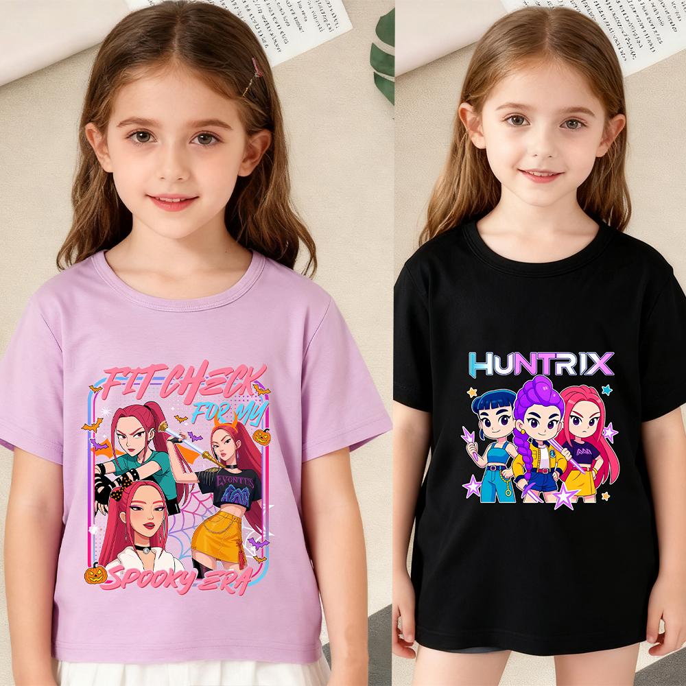 KPop Dämonenjäger Cartoon Print T-Shirts Mädchen Modisch Bequem Kurzärmlig Sommer Vielseitiges Alltags-T-Shirt