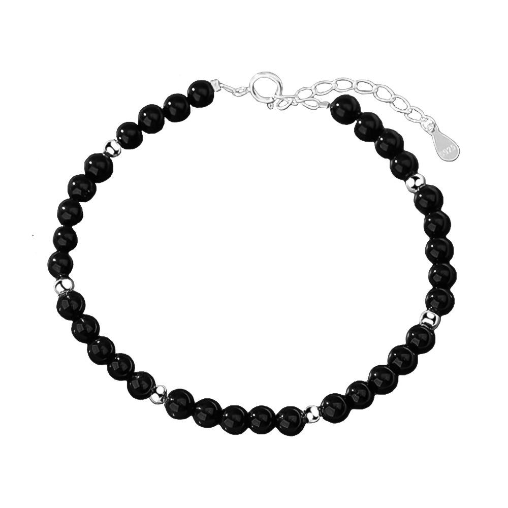 Vielseitiges S925 Sterling Silber & Schwarzer Achat Minimalistisches Mehrreihiges Armband für Damen