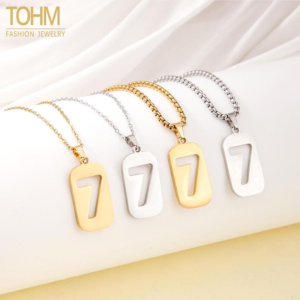 TOHM Glückszahl 7 Titan Halskette: Modisches, vielseitiges quadratisches Design für Influencer