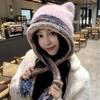 Hochwertige warme Strickmütze aus Wolle mit niedlichen Ohren & großer Krempe für Herbst/Winter