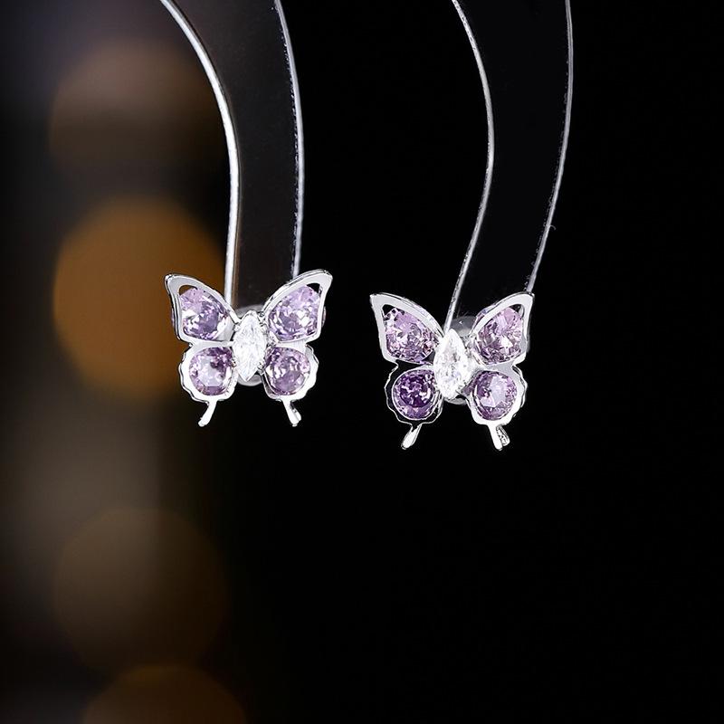 Lila Zirkon Schmetterlingsohrringe: S925 Silbernadel, Kupfer eingelegt, High-End-Mode für Frauen