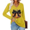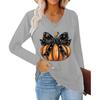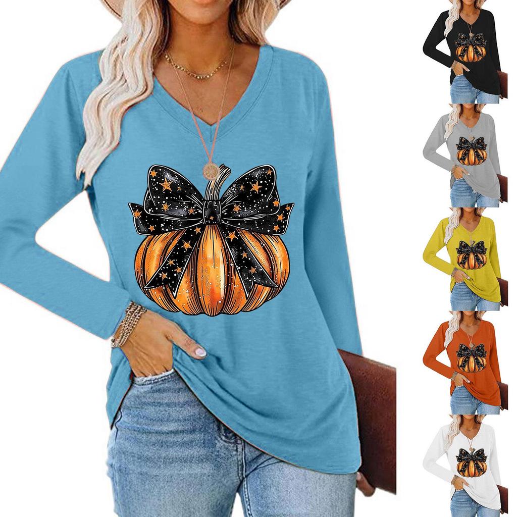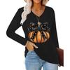 Begrüßen Sie die gruselige Jahreszeit stilvoll mit diesem Damen Halloween V-Ausschnitt Oberteil. Dieses aus hochwertigem Polyester gefertigte Oberteil bietet sowohl Komfort als auch Haltbarkeit. Es verfügt über einen schmeichelhaften V-Ausschnitt und lange Ärmel, wodurch es perfekt für kühlere Herbsttage ist.. Das herausragende Designelement ist sein auffälliger Kürbisdruck, der Ihrer Halloween-Garderobe eine festliche Note verleiht.. Das Baumwollimitat sorgt für ein weiches und angenehmes Tragegefühl, ideal sowohl für den Alltag als auch für Halloween-Partys.
