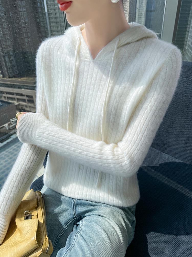 Dieser Damen Wollpullover mit Zopfmuster und lockerer Passform ist perfekt für die Herbst- und Wintersaison und bietet sowohl Komfort als auch Stil.. Dieser Pullover aus hochwertiger Wolle bietet Wärme und ein kuscheliges Gefühl.. Es verfügt über einen Kapuzenausschnitt und lange Ärmel, die zusätzlichen Schutz vor der Kälte gewährleisten.. Der Pullover ist mit einem Kordelzug zur Verstellung versehen, was seine entspannte und literarisch inspirierte Ästhetik unterstreicht.. Das aufwendige Zopfmuster verleiht einen Hauch von Eleganz und macht es zu einem vielseitigen Stück für jede Garderobe.