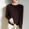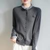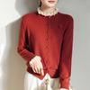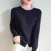 Damen-Cardigan aus gerippter Merinowolle mit Muschelkanten und Rosenstickerei Herbst/Winter 2025