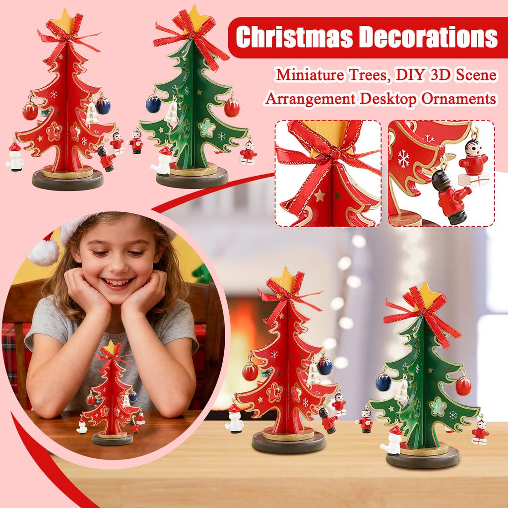 Weihnachtsdekorationen, Miniaturbäume, DIY 3D Szenenarrangement, Tischschmuck