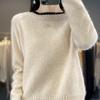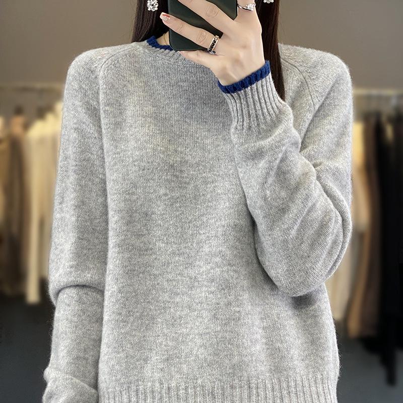 Damen Colorblock Rundhals Schlankmachender Wollstrick Pullover & Basisschicht