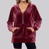 Erleben Sie ultimativen Komfort und Stil mit dieser Damen Gold Samt Kapuzenjacke mit lockerem Schnitt, langen Ärmeln und Reißverschluss.. Diese Jacke mittlerer Dicke ist aus hochwertigem Polyester gefertigt und verfügt über ein einfarbiges Muster, das jedes Outfit mühelos aufwertet.. Der Kapuzenausschnitt und die langen Ärmel sorgen an kühleren Tagen für Wärme und Schutz und machen ihn zu einer perfekten Ergänzung für Ihre Garderobe.. Diese Jacke wurde für Frauen entworfen, die sowohl Mode als auch Funktionalität schätzen, und vereint Eleganz mit Praktikabilität.