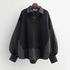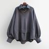 2025 Frühling-Herbst Damen Koreanischer Stil Patchwork Zweiteiliger Look Lockeres Sweatshirt-Bluse
