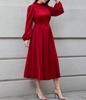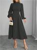 Elegantes A-Linien-Kleid mit hohem Bund, Kragen und langen Ärmeln für den frühen Herbst