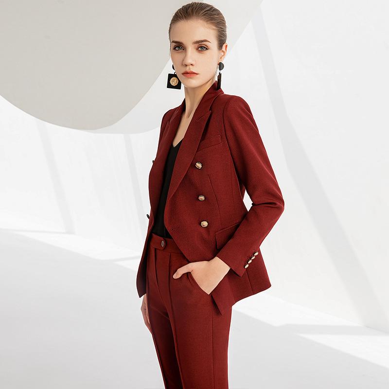 Werten Sie Ihre Garderobe mit diesem eleganten zweireihigen Anzugset auf, das sich perfekt für Frühling und Herbst eignet.. Dieser aus hochwertigem Polyester gefertigte Anzug vereint Strapazierfähigkeit mit einem luxuriösen Tragegefühl und sorgt dafür, dass Sie in jedem professionellen Umfeld elegant und gepflegt aussehen.. Die satte weinrote Farbe verleiht einen Hauch von Eleganz und macht es zu einer markanten Wahl für wichtige Besprechungen, Veranstaltungen oder Anlässe.. Dieses mit viel Liebe zum Detail entworfene High-End-Anzugset richtet sich an den modernen Berufstätigen, der Wert auf Stil und Substanz legt.