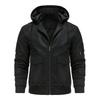 Herren Multi-Taschen Kapuzen Dicke Lederjacke Locker Solide Mäntel