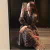 Damen Blumen Chiffonkleid - Mittellang, Französischer Retro-Stil für Frühling, Herbst und Winter