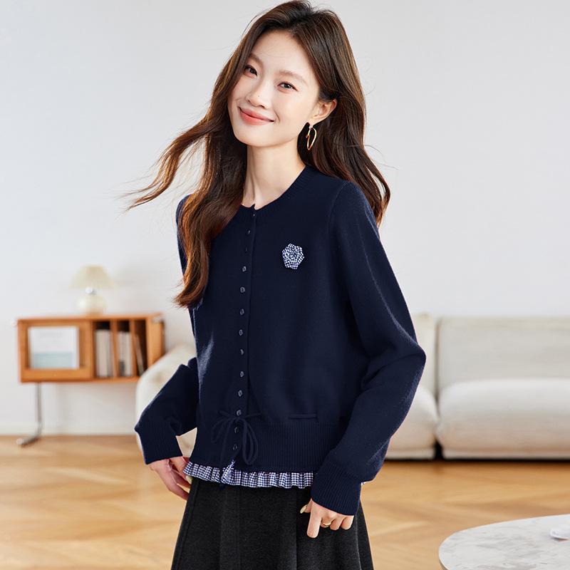 Herbst 2025 Damen Strickjacke: Schmale Passform, Zweiteiliger Spleiß-Look