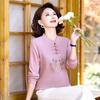 Mamas Herbst Stehkragen Langarm Bluse - Eleganter Nationalstil für Frauen mittleren und höheren Alters