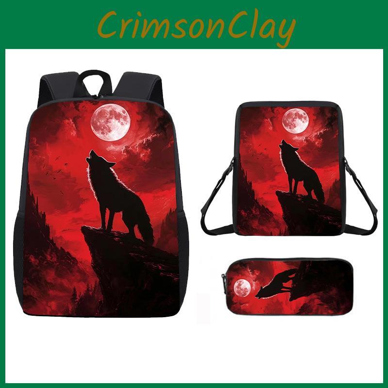 Wolf Pattern Animal Backpack Kids Shoulder Bag Pencil Case Student Use School