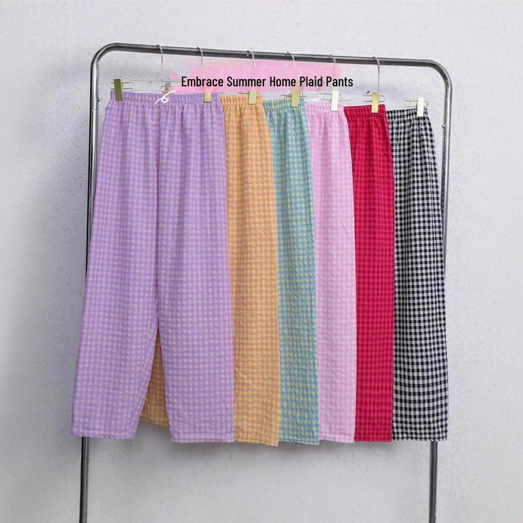 Dopamin Karomuster Weitbeinige Damen Hose - Frühling/Herbst, Hohe Taille, Gerades Bein, Lässig