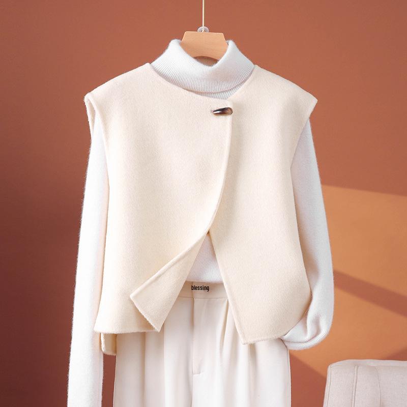 2025 Herbst/Winter Petite Damen Doppelseitige Wolle V-Ausschnitt Weste - Hochwertige Ärmellose Weste