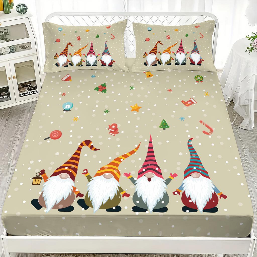 3-teiliges Weihnachtswichtel-Druck Spannbettlaken-Set in mehreren Größen, bequeme Bettdecke, Schlafzimmer-Bettwäsche-Dekoration, maschinenwaschbar